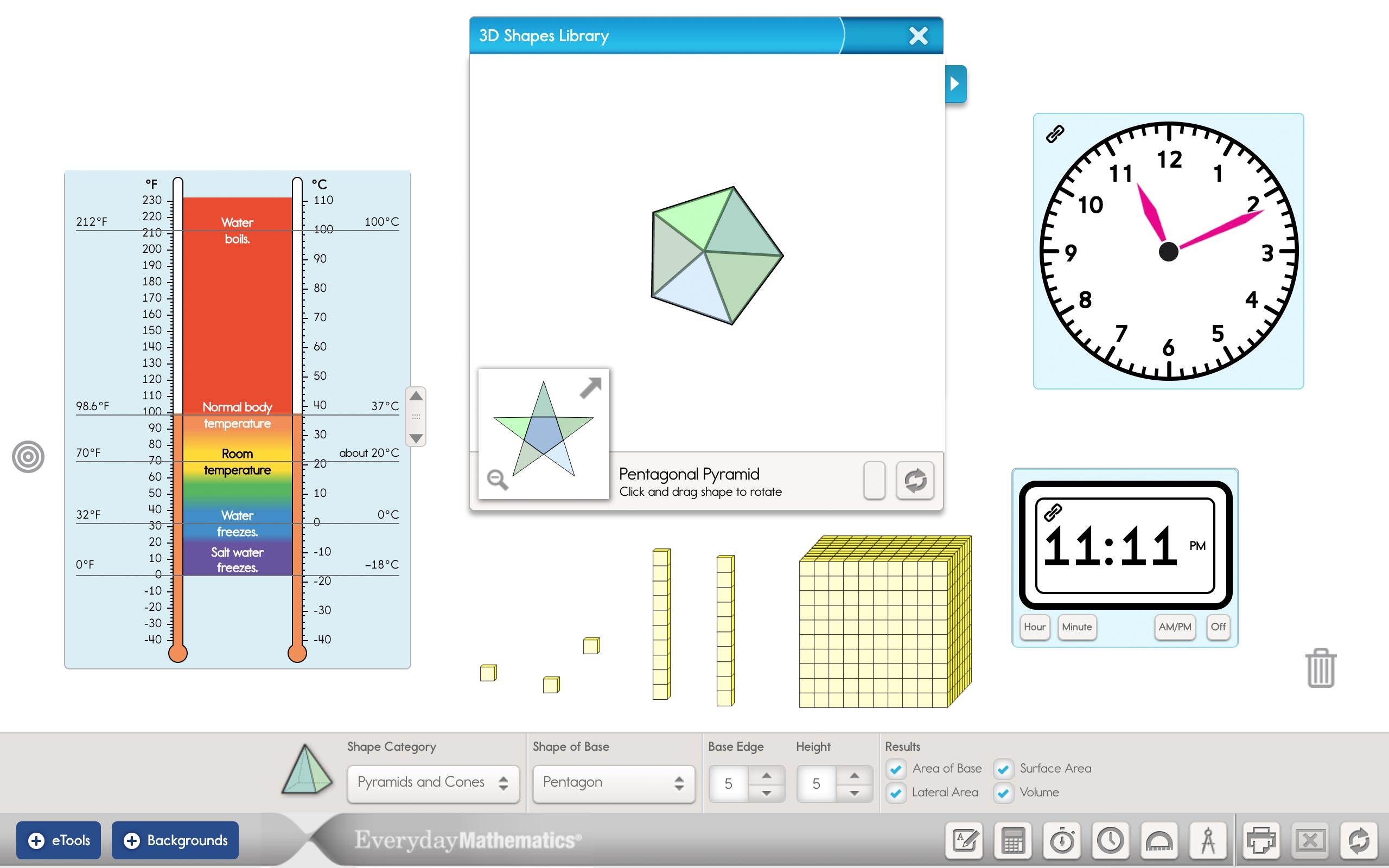 I built math tools for McGraw Hill's Everyday Mathematics program. These tools help teach and reinforce math concepts to children.